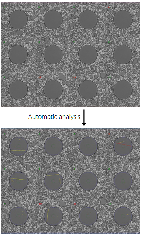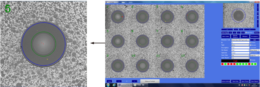 หลังจากใส่ตัวเชื่อมต่อไฟเบอร์แล้ว Smartcheck สามารถทดสอบ endface ทั้งหมดได้ถึง 72 คอร์ของไฟเบอร์เพียงคลิกเดียวที่ปุ่ม "วัด"